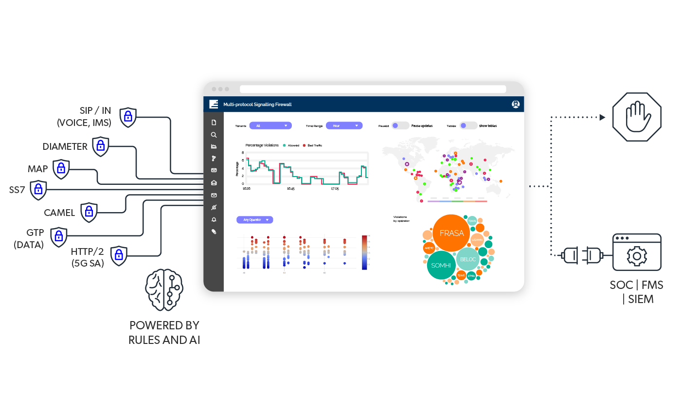 Mobileum’s Cross-Protocol Signaling Firewall is an AI-powered security platform that protects telecom networks across SS7, Diameter, GTP, and HTTP/2 protocols. It combines intelligent threat detection with protocol-specific firewalls to safeguard signaling infrastructure, prevent fraud, and ensure end-to-end visibility across legacy and next-gen networks.