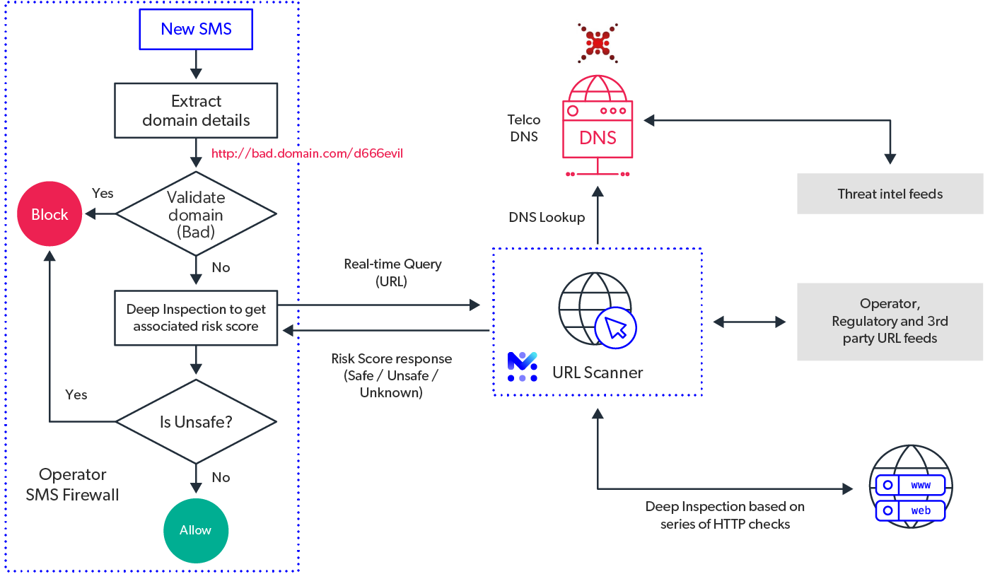 Mobileum’s SMS Firewall uses AI-powered analytics and rule-based controls to filter SMS messages in real time—blocking spam, grey route traffic, smishing, and malicious links. It operates across SS7, SIP, and SMPP protocols, delivering accurate threat detection and seamless protection for mobile networks. Integrated with Mobileum’s URL Scanner and threat intelligence, it ensures full-spectrum SMS security.