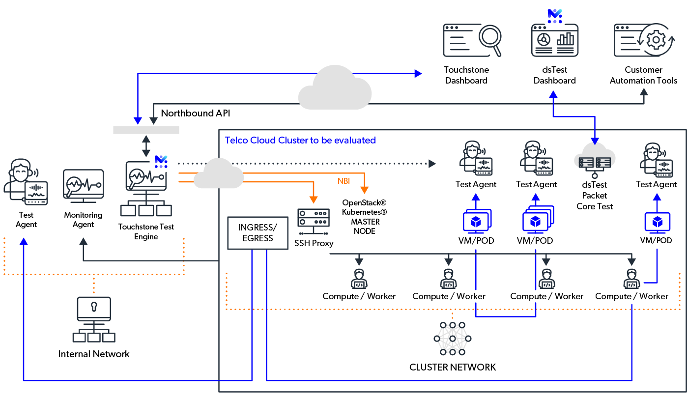 Mobileum’s Performance Testing Suite validates telco infrastructure with automated cloud-native testing for both virtualized (VNF) and containerized (CNF) network functions. Built for scalability, it enables lifecycle testing of compute, network, and storage layers—ensuring high availability and seamless integration with CI/CD pipelines. With RESTful APIs and customizable test libraries, operators can benchmark performance at scale, simulate real-world traffic, and uncover bottlenecks before launch. The suite supports multi-cloud environments and adapts to evolving infrastructure demands.
